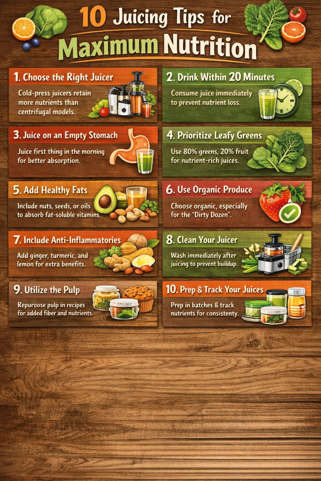 Si desea obtener la mayor nutrición de cada vaso, la forma en que usa su exprimidor es tan importante como lo que pone en él. El prensado en frío a baja velocidad, el jugo con el estómago vacío y el consumo dentro de los 20 minutos posteriores al jugo pueden aumentar la absorción de nutrientes por un margen significativo. Estos no son cambios menores: son la diferencia entre un vaso de líquido azucarado y una bebida saludable genuinamente funcional. Los diez consejos siguientes se basan en la ciencia de los alimentos y en la práctica de hacer jugos en el mundo real, y se aplican ya sea que use un exprimidor centrífugo, un exprimidor masticador o una prensa de doble engranaje.