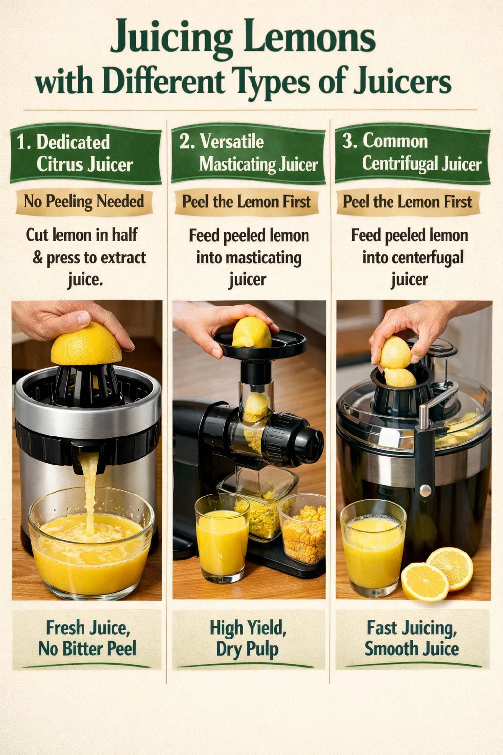 Nota Importante: Primero debes pelar el limón. Debido a que este tipo de máquina muele todo lo que entra, si lo exprimes con la cáscara, los aceites esenciales y el amargor de la cáscara se concentrarán en el jugo, haciéndolo increíblemente amargo.