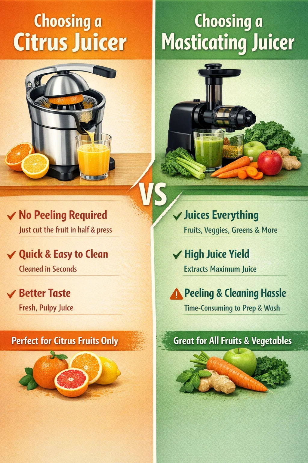 Éste es un dilema clásico. Muchas personas luchan con la decisión de comprar un exprimidor masticador versátil o un exprimidor de cítricos específico al renovar su cocina o comenzar un estilo de vida saludable.