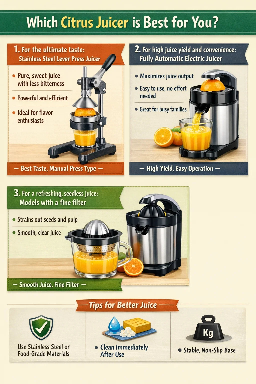 Para extraer jugo fresco y de sabor puro, eligiendo la adecuada exprimidor de cítricos es crucial. Hay muchas máquinas en el mercado, pero cuál es la "mejor" realmente depende de sus requisitos de "delicia" y "textura".